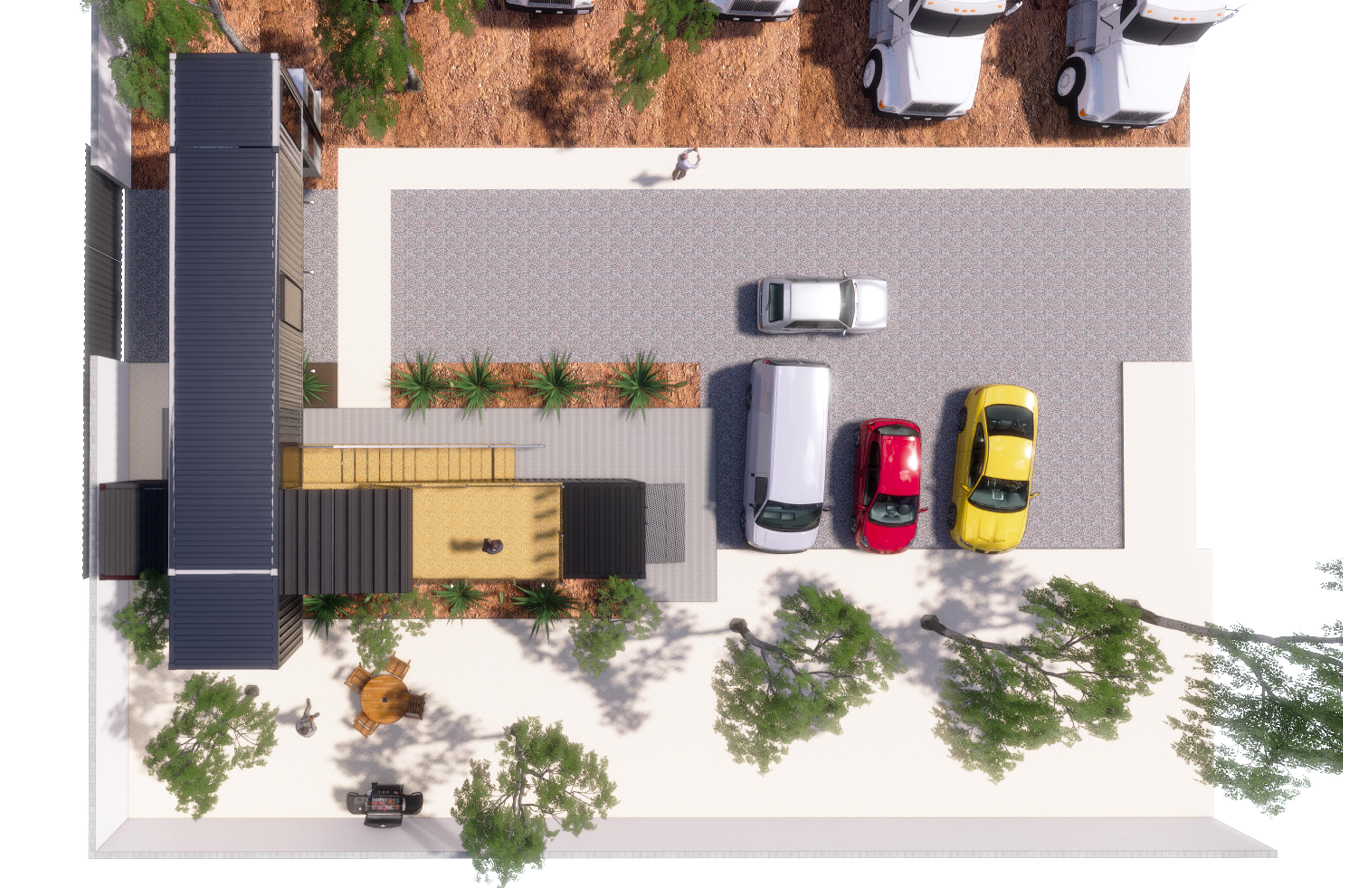 We work hand in hand with a family business, concerned about the proper functioning of your company, being an industrial workshop, we carry out a deep analysis of all the safety regulations that must be met for correct operation, the main element of the design are two maritime containers that were used as offices and a warehouse, with these a set of volumes was created that welcome staff and suppliers, giving character to the space from the exterior facade.